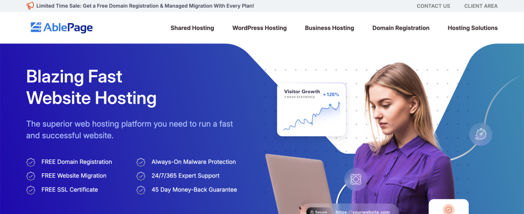 You can then opt for a secure web host like AblePage to get the resources and server space you need to get your site online: