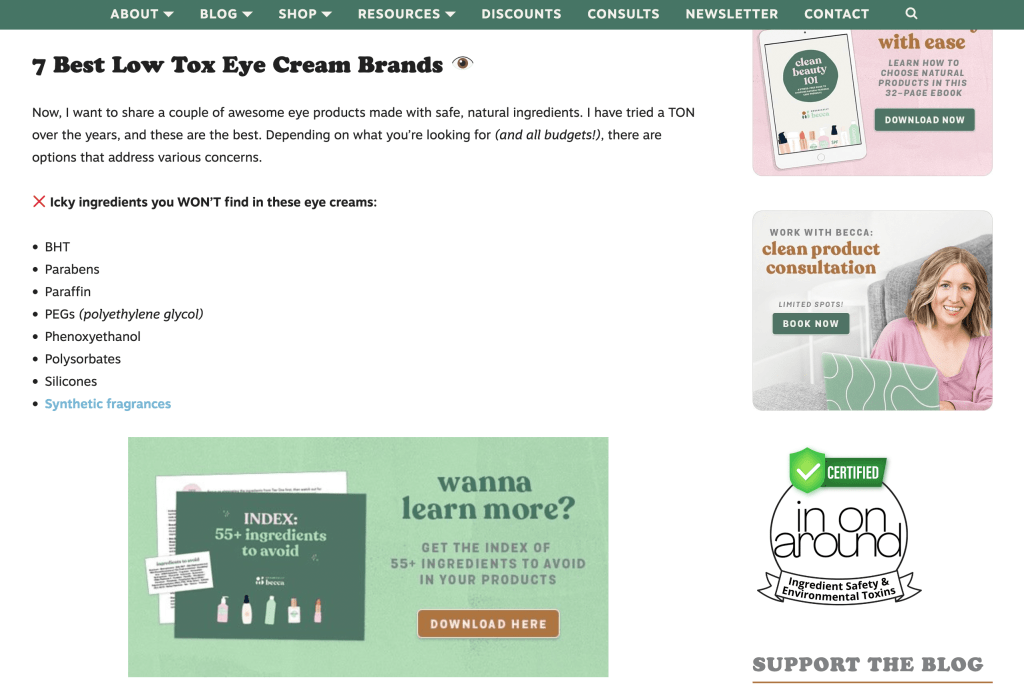 Affiliate marketing lends itself well to blogging as you have lots of opportunities to promote brands. For instance, if you run a blog about clean beauty and makeup habits, you could create blog posts that round up your favorite products: