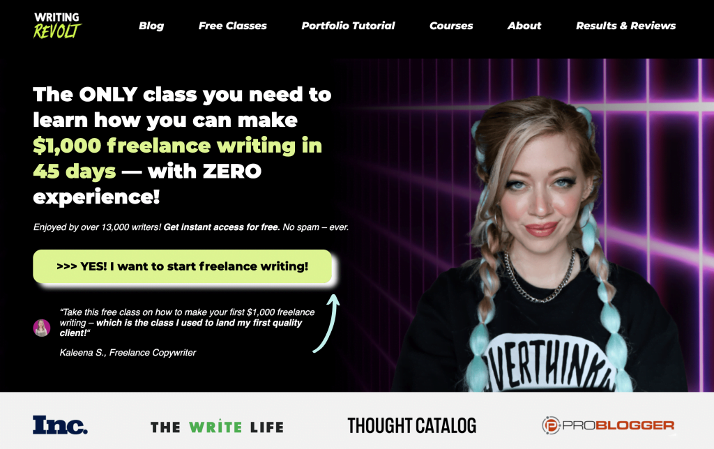 For instance, if you run a blog that provides tips and advice to freelance copywriters, you could offer a certain amount of free resources to prove the value of your content. Then, you could offer courses to help readers reach a specific goal, like earning their first $1,000 as a freelancer:
